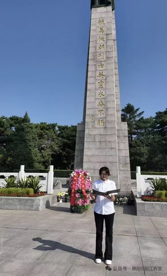 首先,学生代表在纪念碑前发表了饱含深情的演讲。她带领大家重温了70余年前那段波澜壮阔的历史,生动讲述了志愿军战士们在冰天雪地、枪林弹雨中,以“钢少气多”的意志和“保家卫国”的信念,用鲜血和生命谱写的英雄赞歌。他号召全体同学要铭记历史、缅怀先烈,将这份爱国情怀内化于心、外化于行,努力成长为担当民族复兴大任的时代新人。