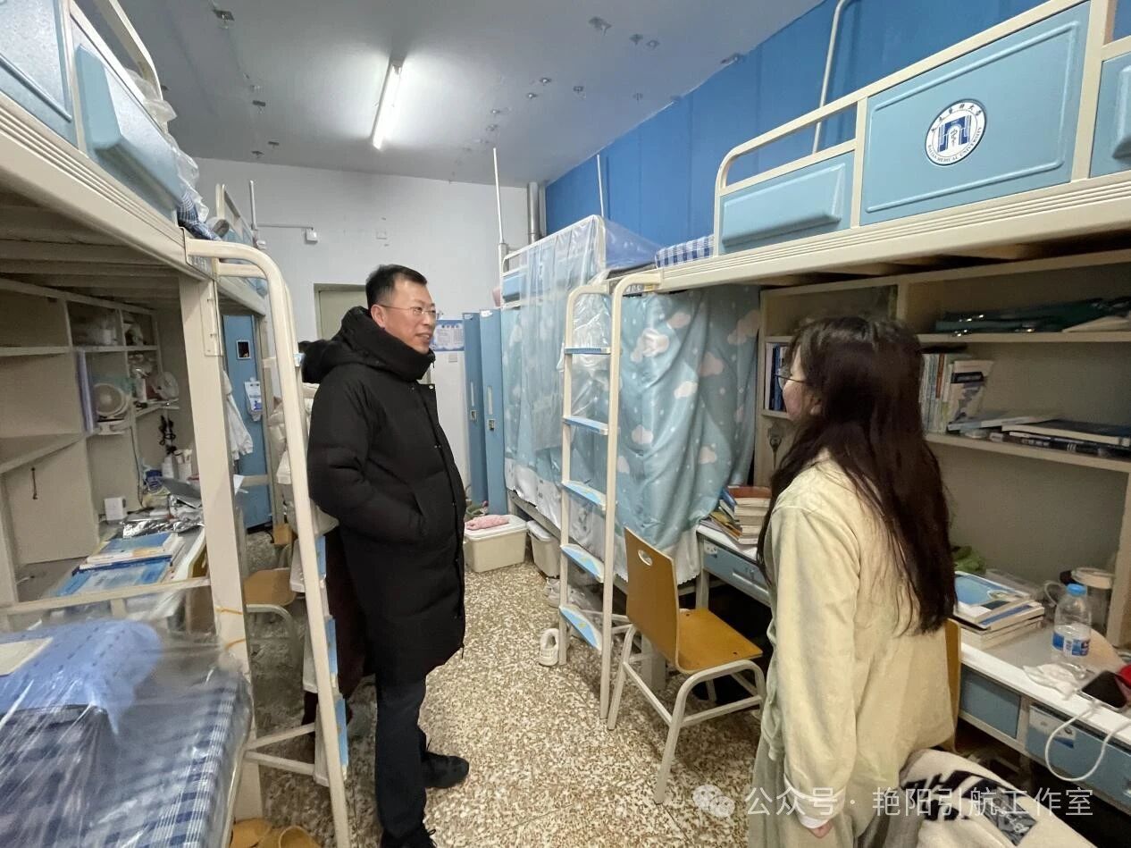 党总支书记苍健走进学生社区,与学生面对面交流,将“安全教育课”与“心理健康课”送到学生身边。他耐心倾听学生心声,引导学生关注自身安全,培养健康心态,为学生新学期的社区生活筑牢安全防线,让学生以积极状态迎接学习生活。
