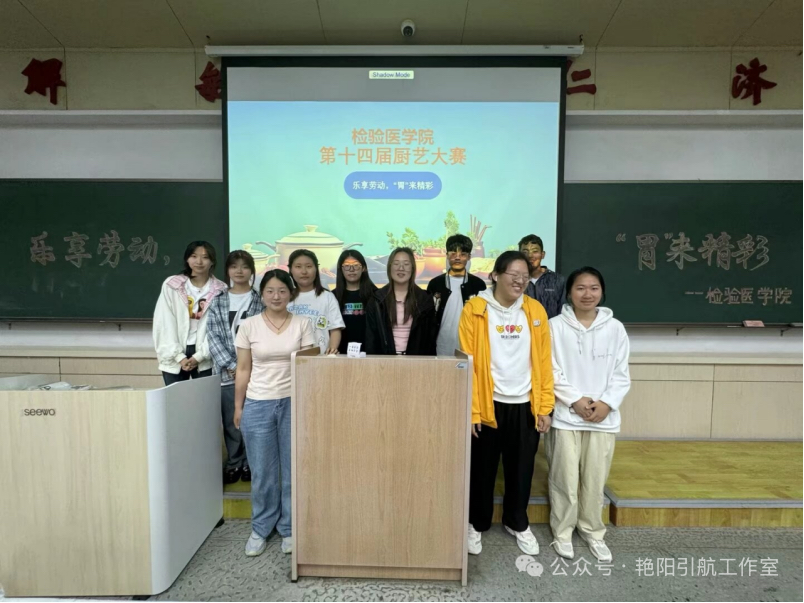 近日,检验医学院举办一场别开生面的厨艺大赛,来自学院2024级各班级的同学们纷纷化身“大厨”,在锅碗瓢盆间施展十八般武艺,为同学们带来一场味觉与视觉的双重盛宴。除了紧张刺激的厨艺比拼,现场还特别设置了猜谜语小游戏,为活动增添了不少欢乐与趣味。比赛当天,参赛选手们分工明确,配合默契。切菜、配菜、每一个步骤都有条不紊地进行着。大家使出浑身解数,各种烹饪技巧轮番上阵,一时间,香味四溢。不一会儿,一道道色香味俱佳的菜肴就摆满了展示台。丰富多样的菜品充分展示了同学们的创新思维和精湛厨艺。在紧张的比赛间隙,猜谜语小游戏成为全场的焦点。谜面涵盖了美食、食材、烹饪工具等多个方面,既考验大家的知识储备,又充满了趣味性。同学们围在谜语前,认真思考,热烈讨论,不时有人猜出答案,引得周围一阵欢呼。这个环节不仅让大家在比赛之余放松了心情,还增进了彼此之间的交流与互动。